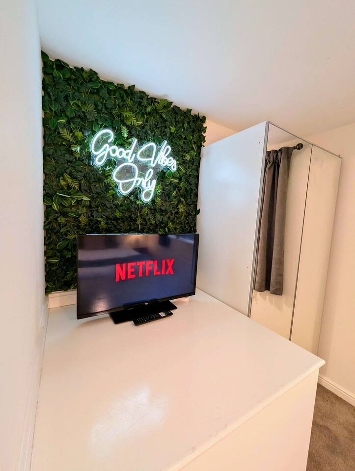 ☞ 2 bedrooms (3 beds) ☞ King size bed ☞ Self check-in ☞ Free parking on-drive (1 spot) ☞ Super fast WiFi ★A great booking just by the hospital and really central to great amenities. ☞ 2 Smart TVs w/ Netflix ☞ Full kitchen ☞ Fenced garden ★Amazing stay. George was super helpful. ☞Couples, Families, contractors, groups ☞ Property guide 》Steps from O2 Apollo + Oxford Road 》7 mins to C-centre 》9 mins to Co-op Live & Etihad 》20 mins to Airport